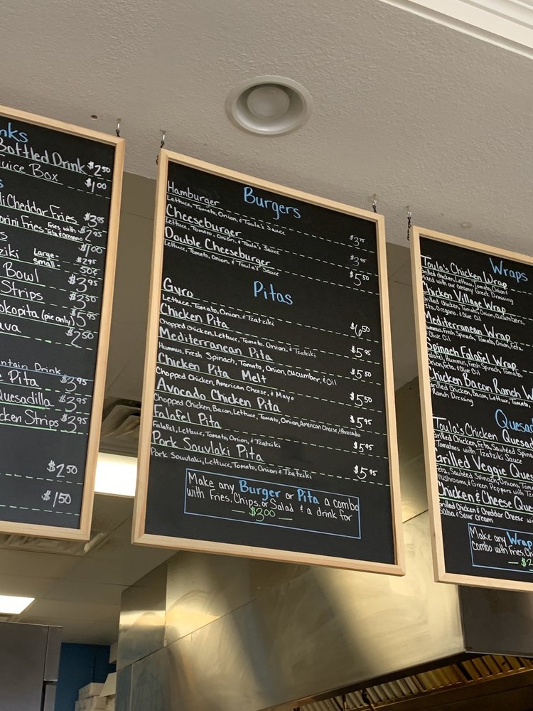 Warm Pita with fresh cooked to order Falafels, Tzaziki, Tomatoes, Onions and Lettuce.