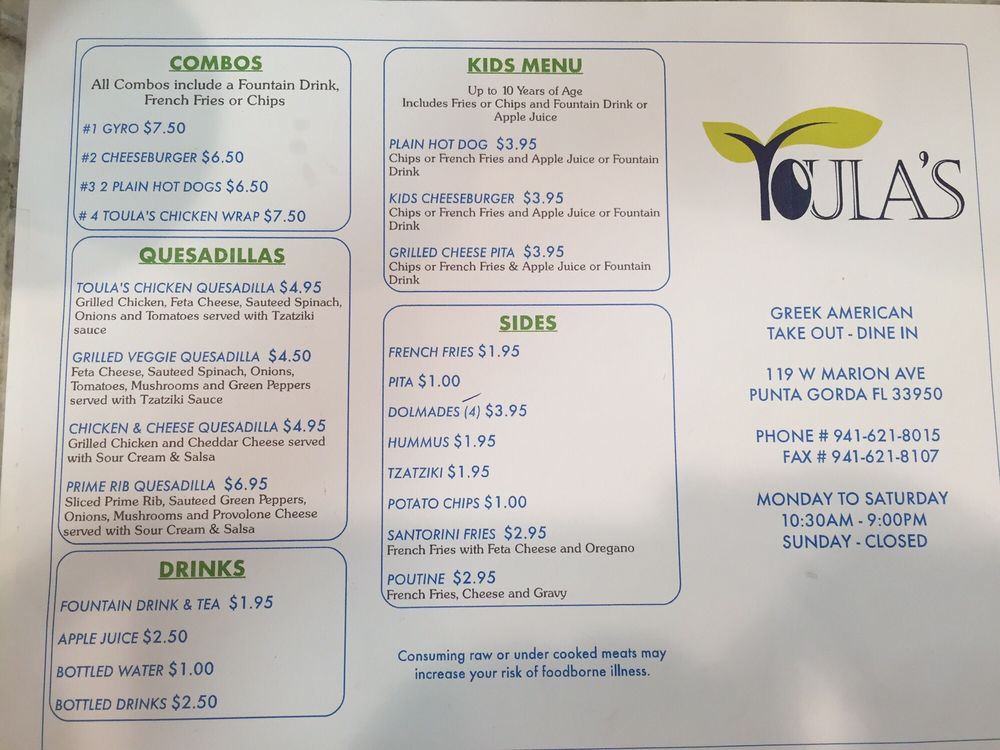 Welcome to Toula's, a delightful eatery located in the heart of Punta Gorda, FL. Specializing in fresh salads and hearty sandwiches, this casual dining spot caters to all, offering a warm and inviting atmosphere perfect for families and groups alike.
